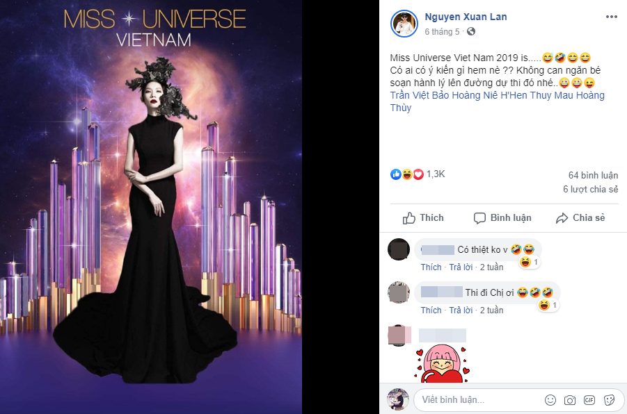 Hoàng Thùy mang trong mình nỗi khao khát được một lần đại diện cho nhan sắc Việt hô vang 2 tiếng Việt Nam trên đấu trường quốc tế. Tâm nguyện đó đã thành sự thật, hạnh phúc vỡ òa trong niềm vui sướng khi thanh xuân của mình được viết tiếp ở một trang mới. Ngày 06/05/2019 mãi mãi trở thành một cột mốc chói lọi của chân dài Thanh Hóa. Hòa chung phong trào “ẻm hàng” công bố đại diện Việt Nam thi Miss Universe 2019, Xuân Lan vẫn âm thầm ủng hộ học trò cưng của mình bằng việc thể hiện hành động cực kì tò mò. Quan tâm vừa đủ, hành động thiết thực, đồng cảm đúng thời điểm có lẽ là những gì mà sư phụ dành cho cô trò nhỏ Hoàng Thùy.