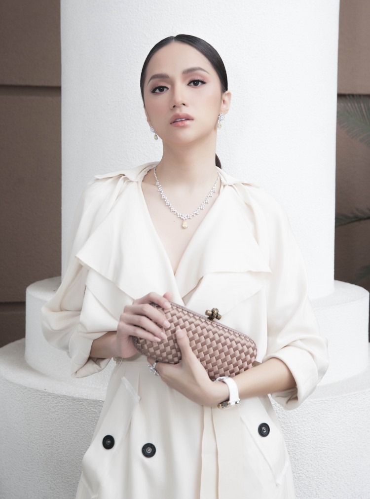 Mới đây, trên trang cá nhân của mình Hoa hậu Hương Giang đã đăng tải những hình ảnh khi được mời đến tham gia một sự kiện. Điều khiến cư dân mạng đặc biệt chú ý là mái tóc rất độc đáo và cá tính của cô nàng, nàng Hậu cũng vui vẻ bật mí mình đã dùng đến 25 cái kẹp để tạo hình. Diệm kèm chiếc váy xẻ tà gợi cảm, Hương Giang hóm hỉnh chia sẻ: “Chắc lâu lắm rồi mới chếch chi thế nàyyyy, tự nhiên tưởng mình đang đi dự tiệc đêm bên Holywood”.