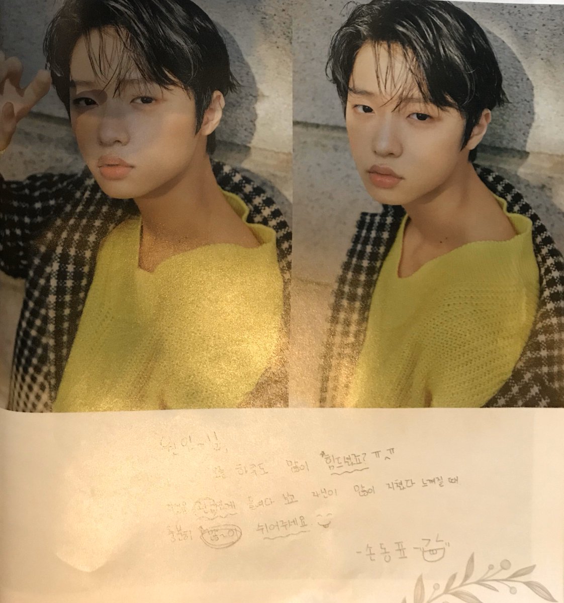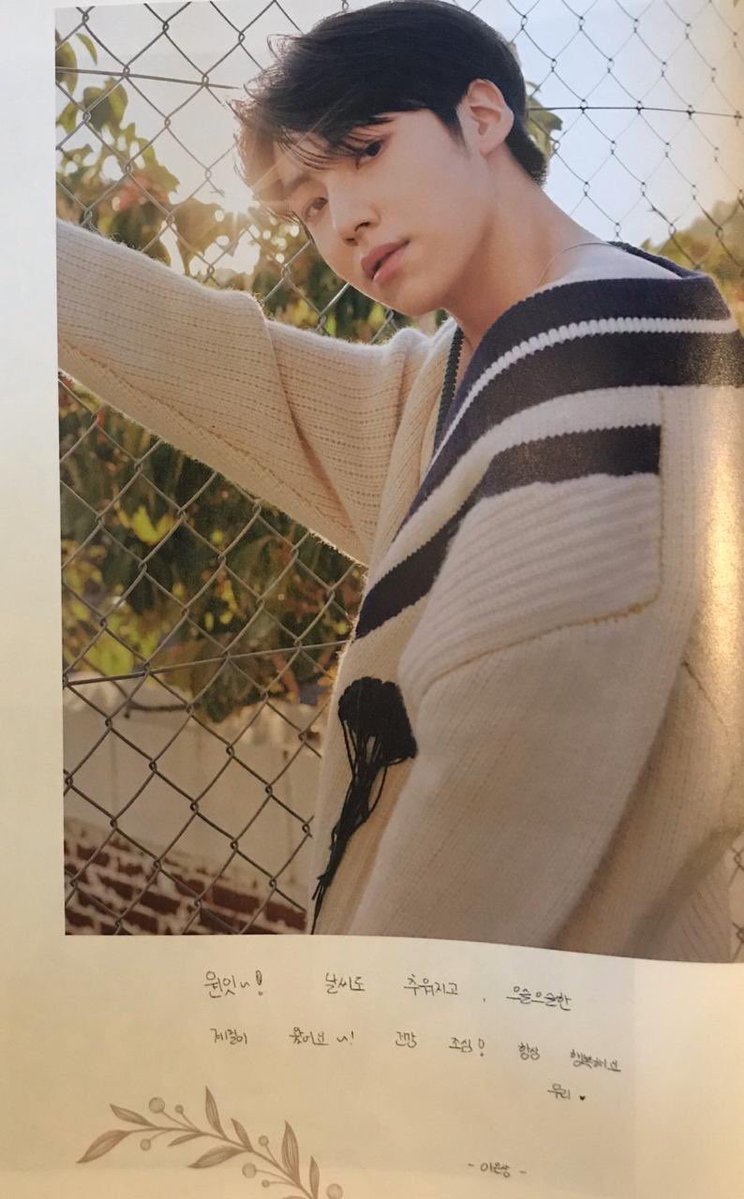 Kim Woo Seok: “Hôm nay, cũng như mọi ngày, mình mong rằng những ngày này của các cậu sẽ được đong đầy bởi thật nhiều niềm hạnh phúc. Luôn yêu mọi người, chúng ta hãy cùng ở bên nhau nhé ~”.