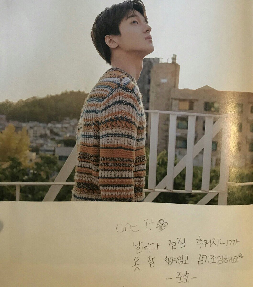 Cha Jun Ho: “Thời tiết trở lạnh rồi, mọi người hãy mặc quần áo đúng cách và cẩn thận để tránh cảm lạnh ạ”.