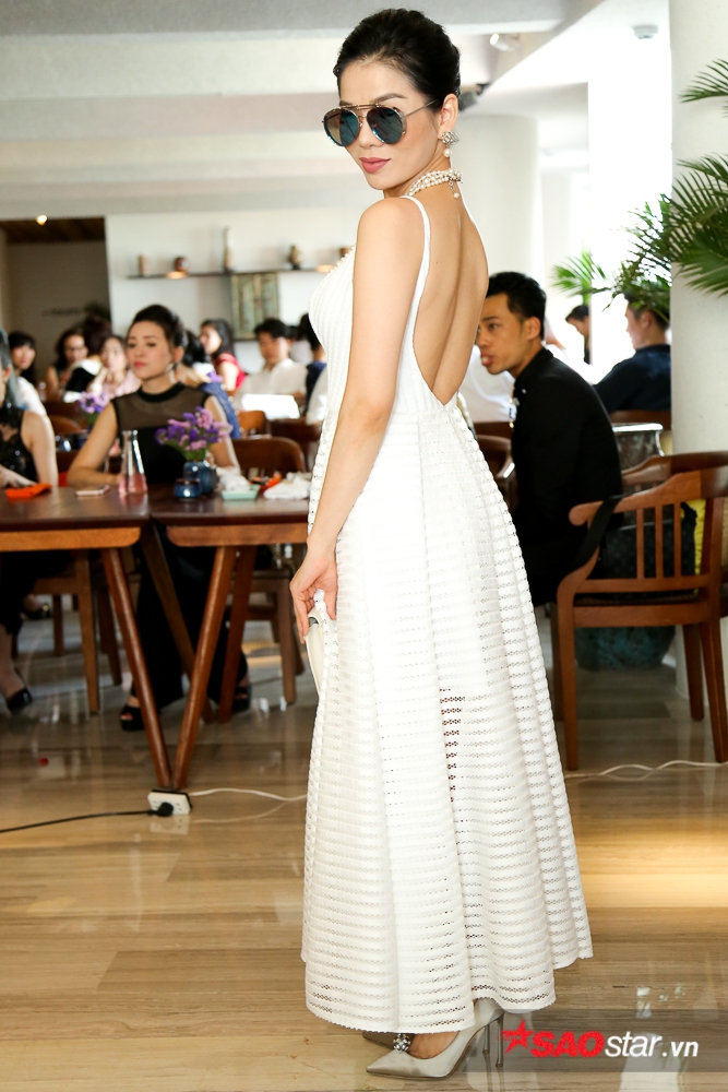 Thủy Top vẫn giữ nét gợi cảm, quyến rũ khi diện chiếc đầm đen ôm sát cơ thể.