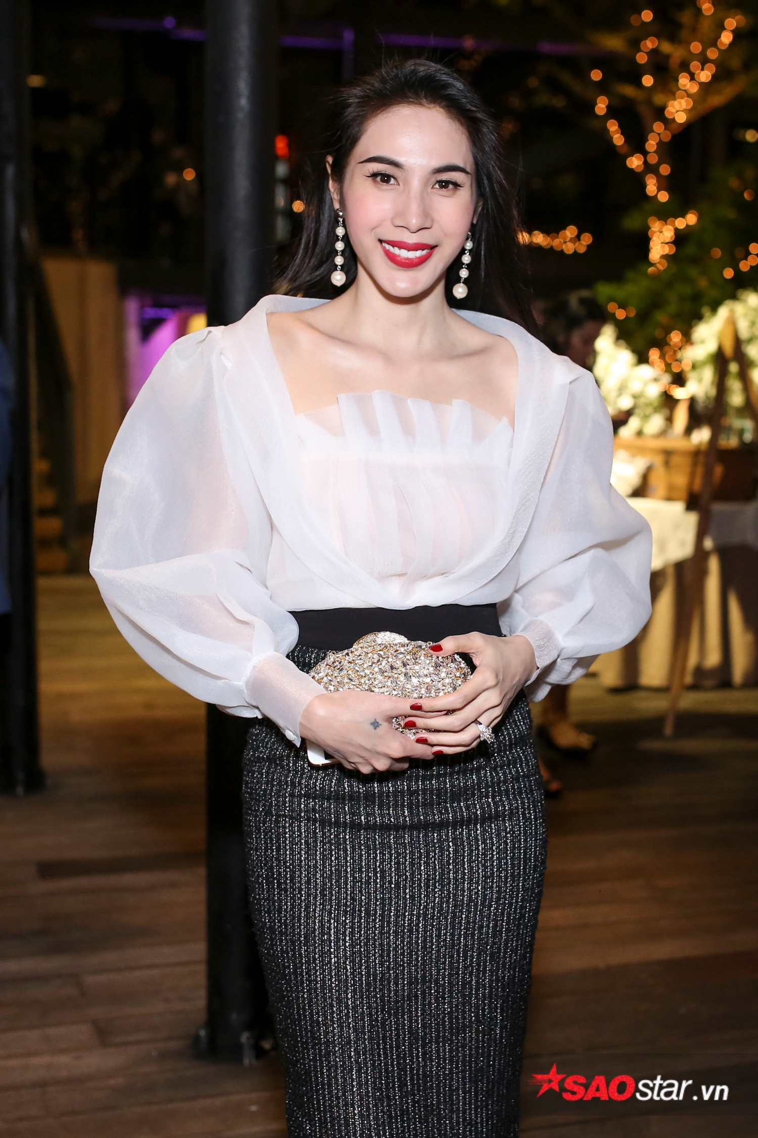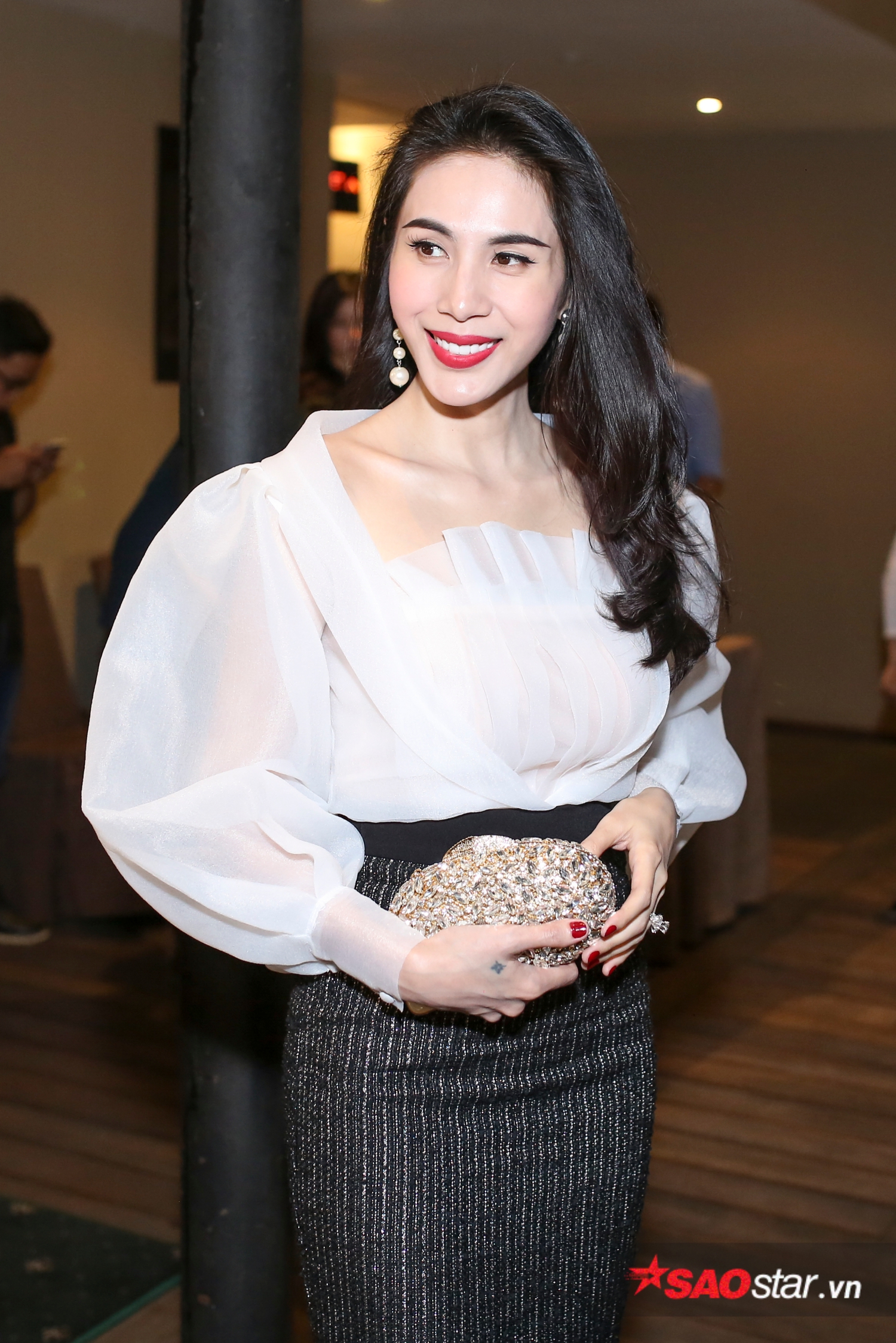 Thủy Tiên diện bộ váy thanh lịch, nhã nhặn nhưng vẫn khoe khéo làn da trắng mịn cùng nhan sắc mặn mà, quyến rũ.