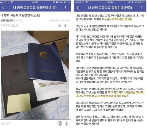 Một giáo viên khác trong trường trung học của Seobin từng có cuộc trả lời phỏng vấn của truyền thông với tiêu đề Byungwhi không phải người cho phép mình giao du với kẻ xấu. Giao viên này cũng chia sẻ thêm:“Byungwhi không bạo lực trong trường, Byungwhi chúng tôi biết không phải là người sẽ đi chơi với iljins. Cậu ấy thậm chí sẽ ăn mặc như một người phụ nữ và nhảy múa trong các lễ hội ở trường. Cậu ấy rất giỏi nhảy và hát. Byungwhi là một đứa trẻ tinh nghịch”.