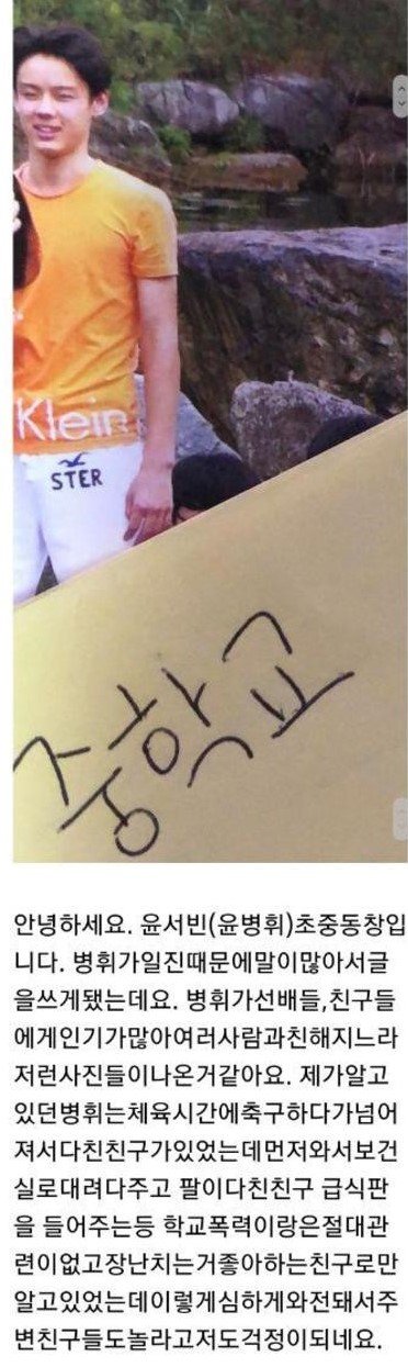 Điều đặc biệt là, tất cả những phân tích ở trên không ai khác được viết bởi Shin Jungmin - lớp trưởng lớp trung học cũ của Yoon Seobin. Anh chàng này cũng tự nhận rằng mình là một người bạn rất thân của Seobin:“Tôi đã viết những dòng trên vì tôi thân với Byungwhi và tôi chỉ viết vậy thôi. Byungwhi luôn mỉm cười và làm việc chăm chỉ. Tôi và bạn bè của tôi đã ủng hộ Byungwhi trong sự cố không may này”.