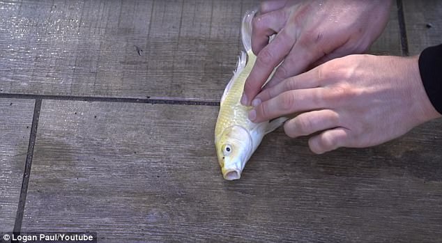 Logan Paul tiến hành CPR cho cá sau khi anh lấy từ bể nước.