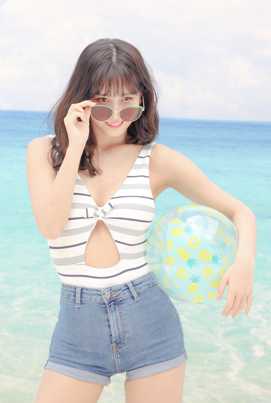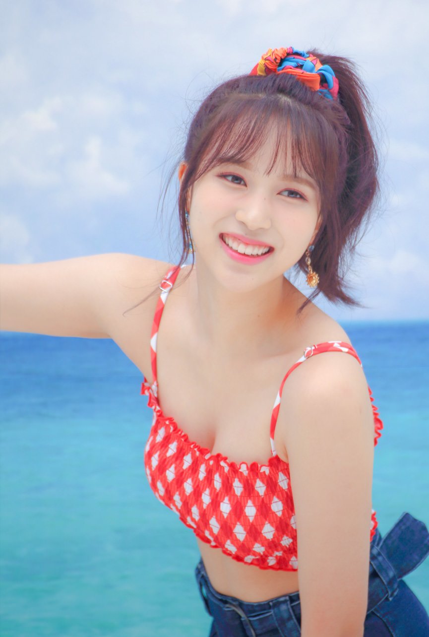 Nếu bạn vẫn băn khoăn không biết nên mặc váy ngắn như Nayeon hay váy dài như Momo, hãy về với đội của Jeongyeon. Chiếc váy độc đáo này rất thích hợp để bạn diện tới những party mùa hè.