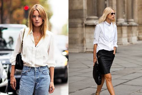 Tuy đơn giản nhưng sơ mi trắng không bao giờ khiến bạn bị lỗi mốt, bất luận là mặc với quần ngắn , quần jeans, chân váy hay phá cách với váy yếm…