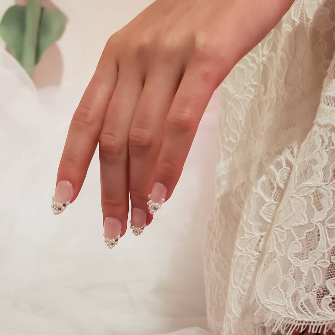 8. Hãng Alice and Olivia không chỉ làm phái đẹp chết mê với kiểu tóc đính hoa oải hương mà còn vì bộ nail đính ngọc trai cực xinh xẻo. Ngọc trai là ‘nữ hoàng’ xuất hiện trong tất cả các item mới của năm 2020, từ khuyên tai, quần áo, băng đô, vòng tay, giày dép, cặp tóc và giờ là móng tay.