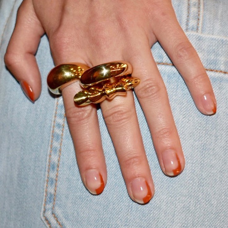 1. Hãng thời trang Oscar de la Renta chọn màu da và màu cam làm 2 tông màu chủ đạo cho bộ sưu tập 2020. Nghệ sĩ nail Miss Pop đã đăng hình người mẫu của đêm diễn lên instagram để các chị em biết ‘địa chỉ’ nếu muốn sở hữu 1 bộ tương tự.