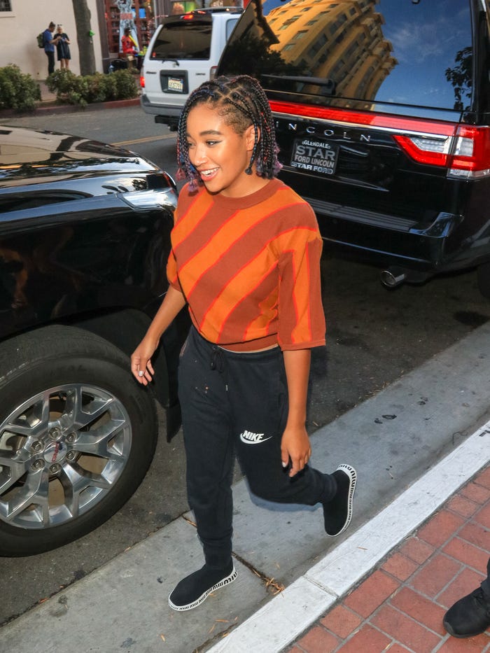 Một chiếc áo màu cam, vàng, hồng sẽ mang lại vẻ ngoài rực rỡ, năng động cho bạn. Amandla Stenberg trông vô cùng thoải mái và nữ tính trong trang phục sporty.