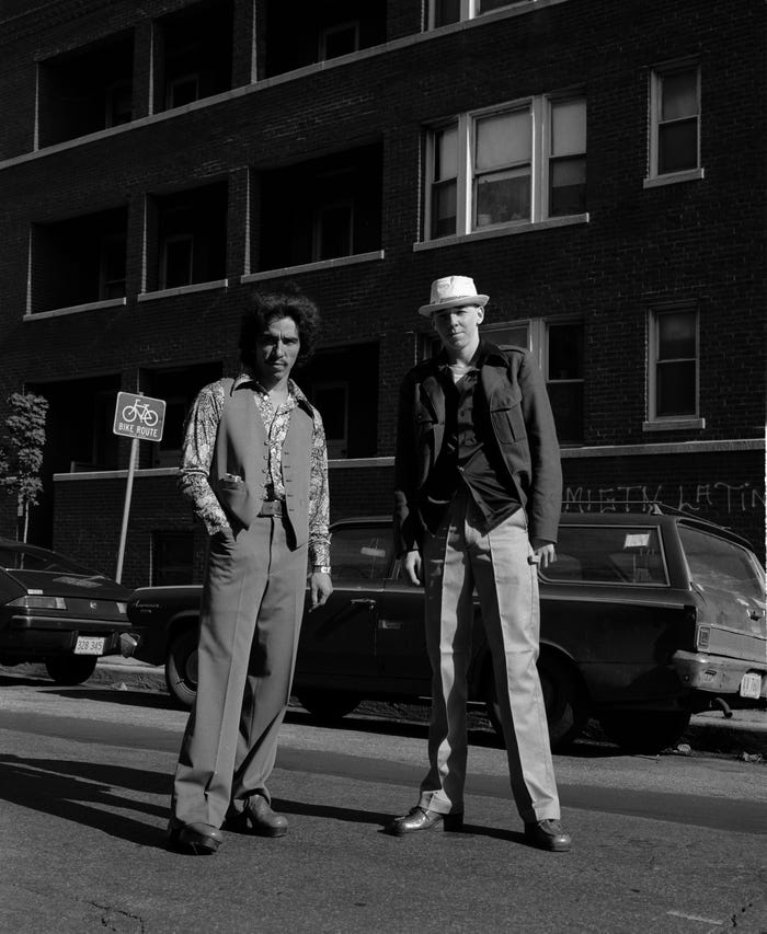 Thời trang đường phố nam vào đầu những năm 1970 nổi bật với các chất liệu có họa tiết vui nhộn.