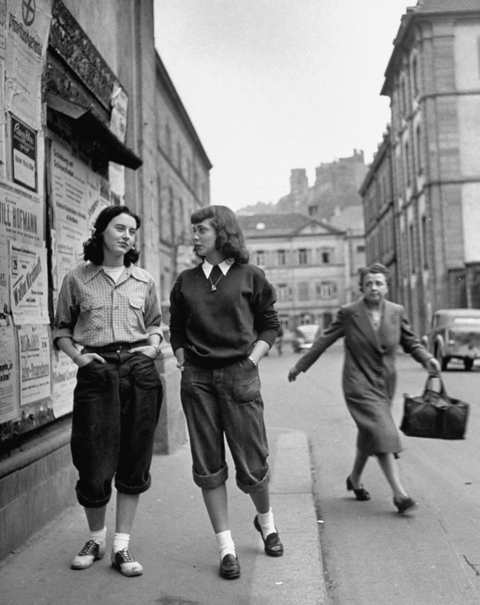 Cũng năm 1940s, Những cô gái trẻ trong độ tuổi 20 lại chuộng quần ngố và giày Oxford.