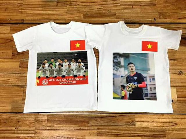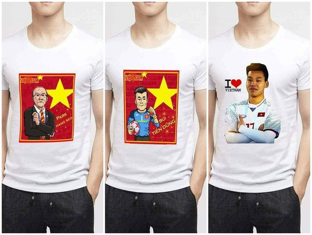 Ngoài chiếc áo hoodie nỉ xám, người hâm mộ còn “phát sốt” với kiểu áo phông trơn, in hình các chàng cầu thủ hoặc cả đội tuyển U23.