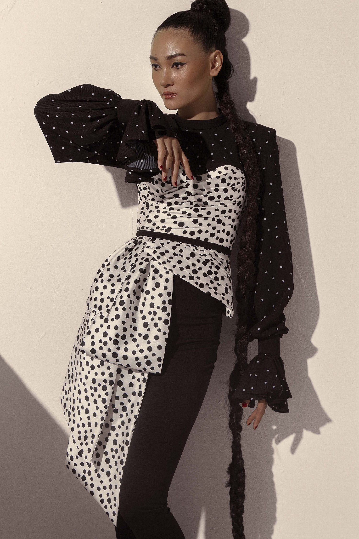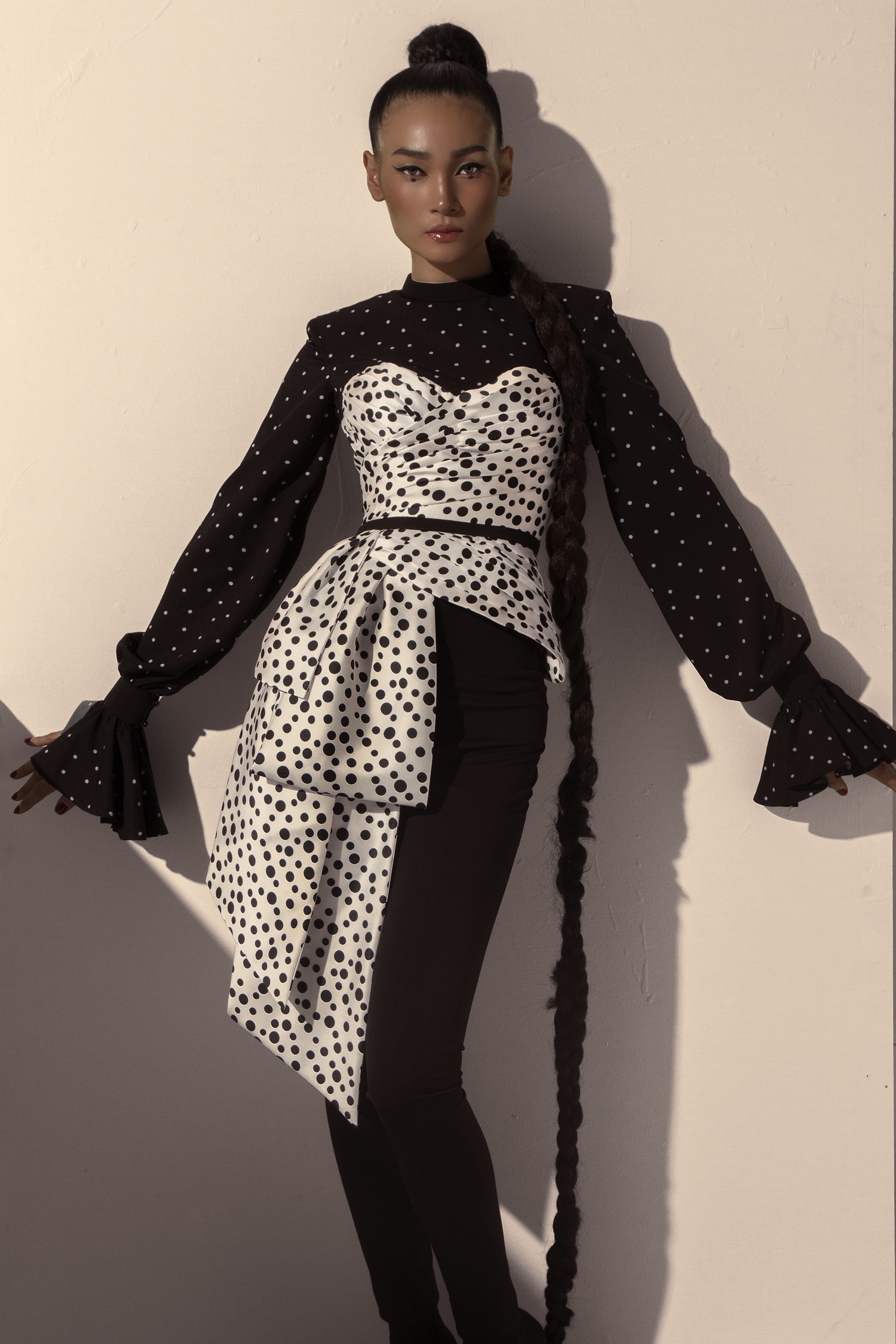 NTK Tăng Thành Công đem hoạ tiết chấm bi quay trở lại mùa mốt thu đông năm nay với những thiết kế phá cách, táo bạo nhưng cũng không kém phần sanh trọng.