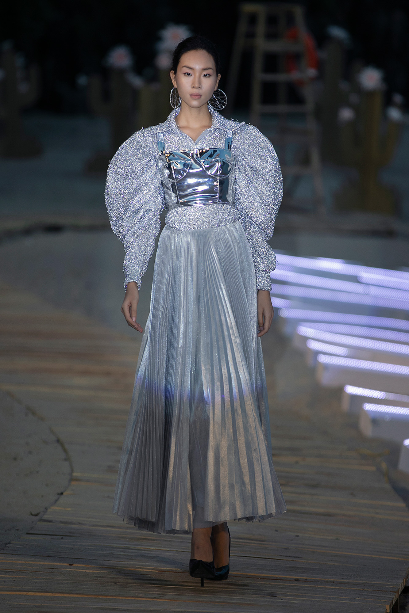 Đêm hội hè lấp lánh ánh bạc, gam metalic phản sáng