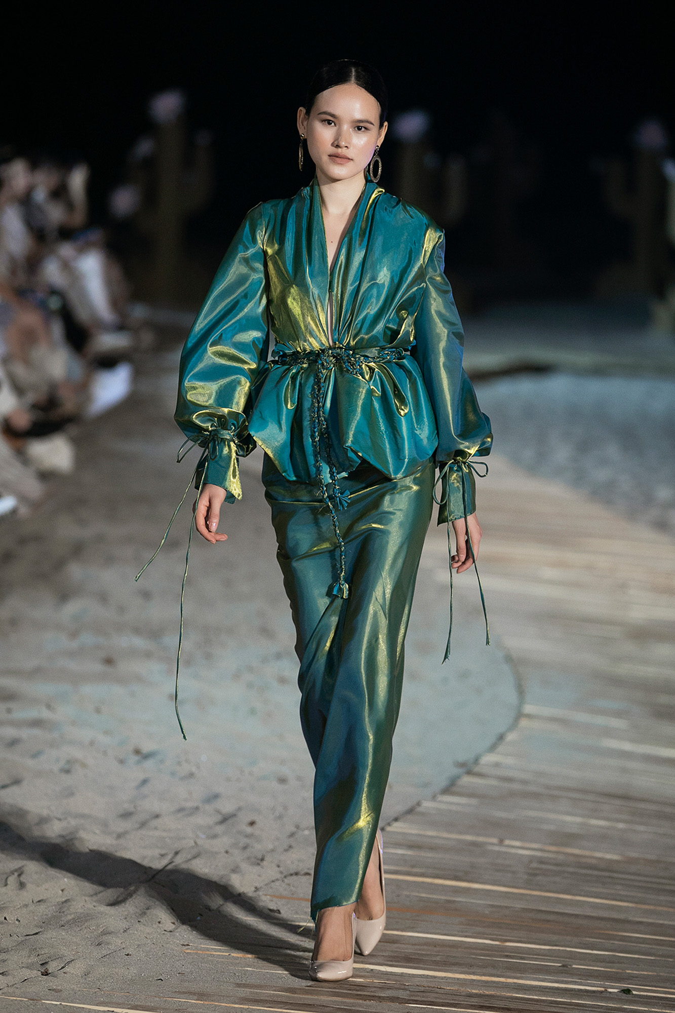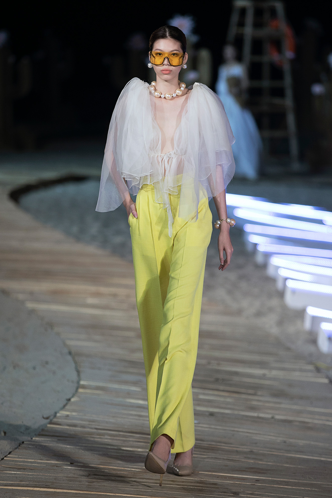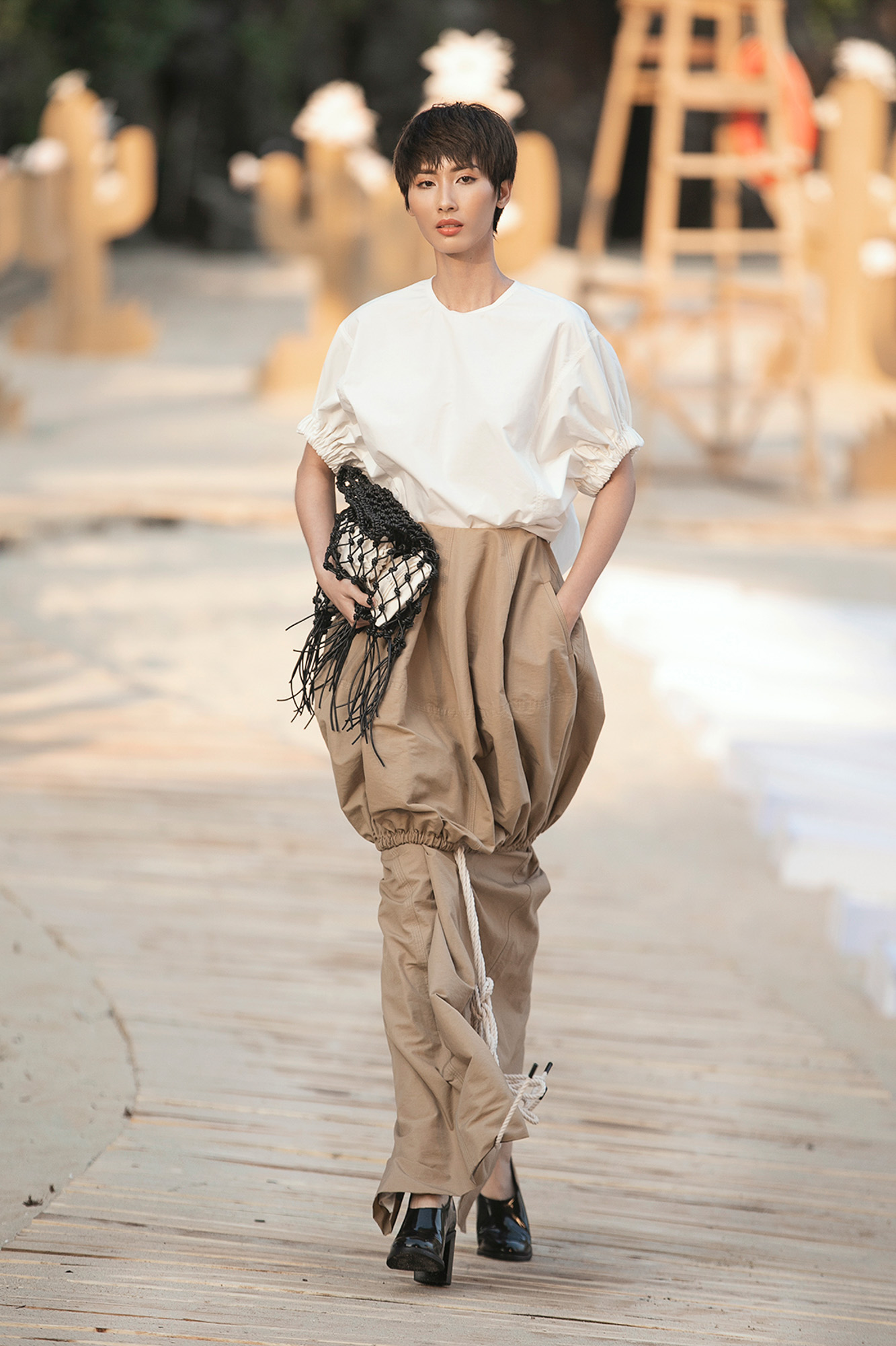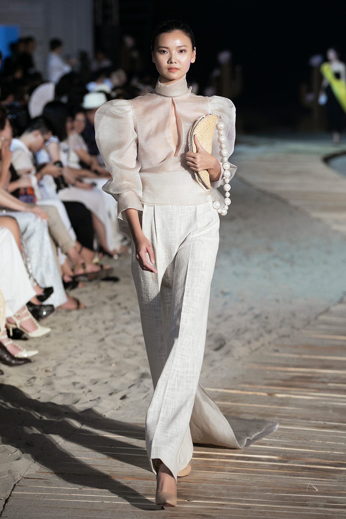 Những kiểu váy lả lơi, áo tay phồng xẻ sâu cùng quần ống suông cũng là loạt thiết kế nàng nên để mắt.
