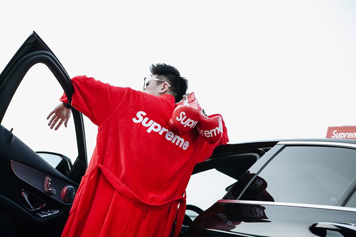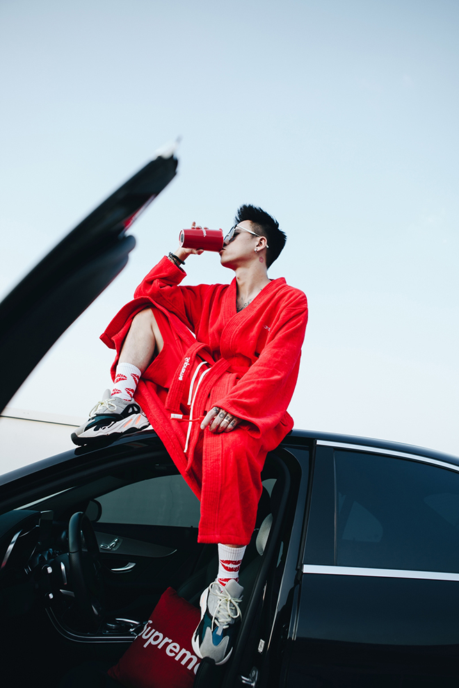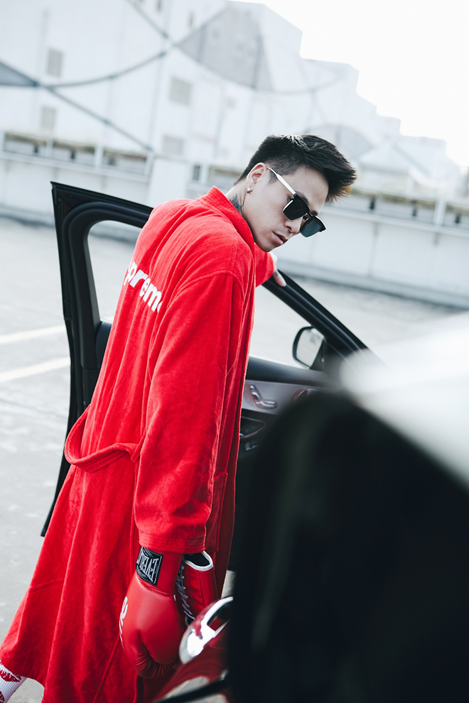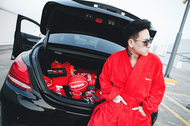 DJ Minh Trí cực ngầu với kính hàng hiệu và áo choàng nhung nỉ đỏ quyền lực