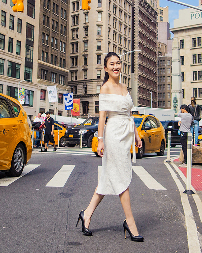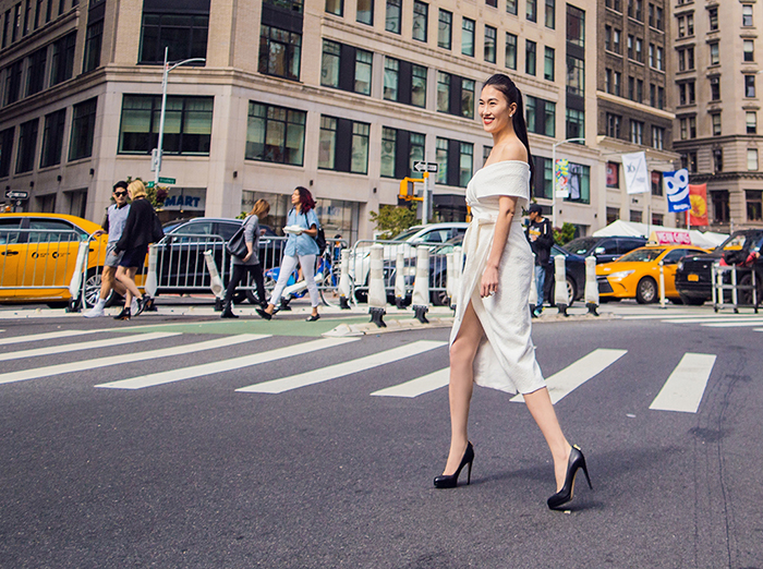 Cô sải bước trên đường phố New York đầy kiêu sa và tự tin