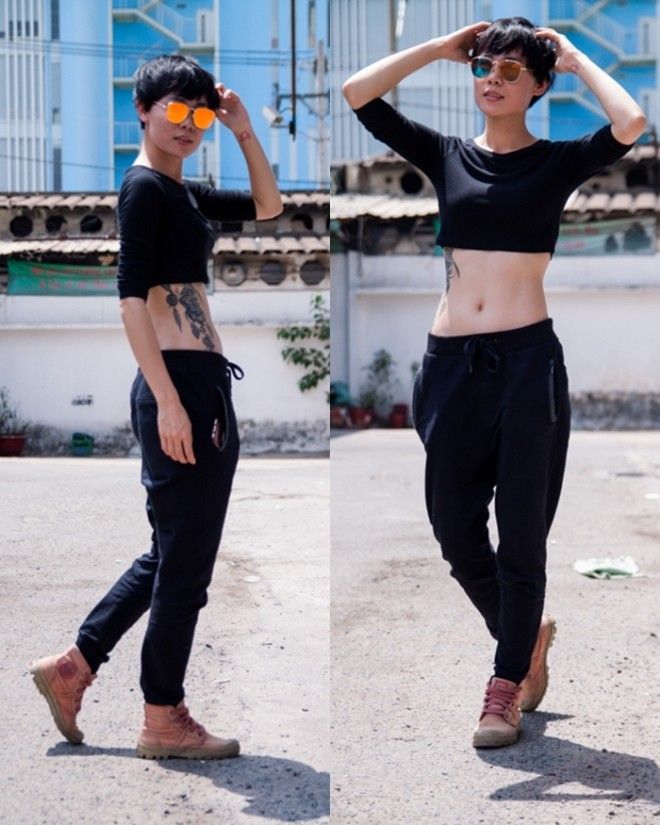 Người mẫu Phương Anh khoe thân hình cực chuẩn trong chiếc croptop và quần jogger năng động. Điểm nhấn của bộ trang phục là chiếc kính mát mặt gương màu hoàng hôn.