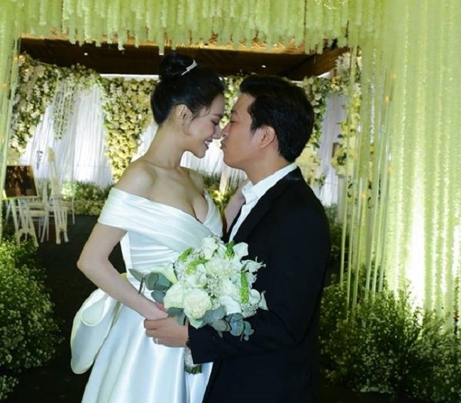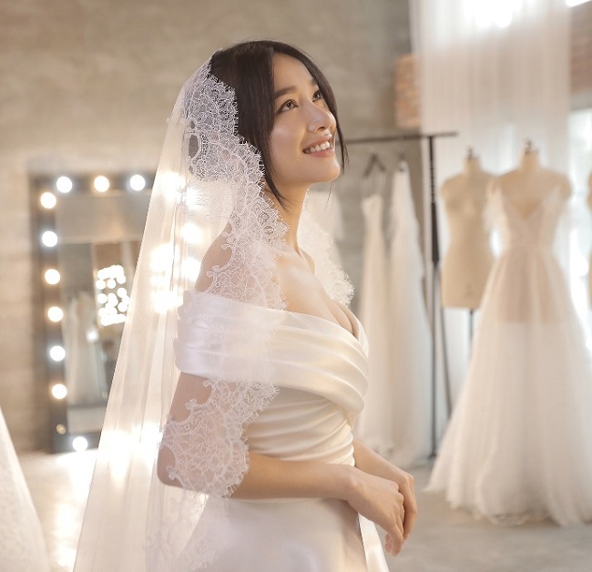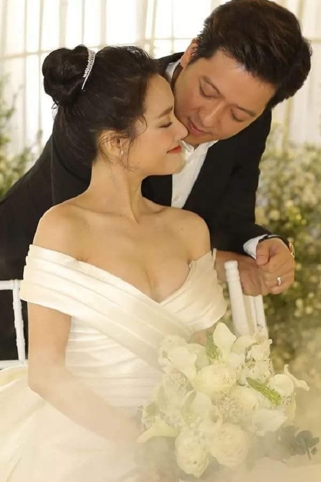 Trong ngày cưới của mình, nữ diễn viên đã thật sự hóa công chúa khi chọn lựa một chiếc váy tay cúp ngang vô cùng thanh nhã.