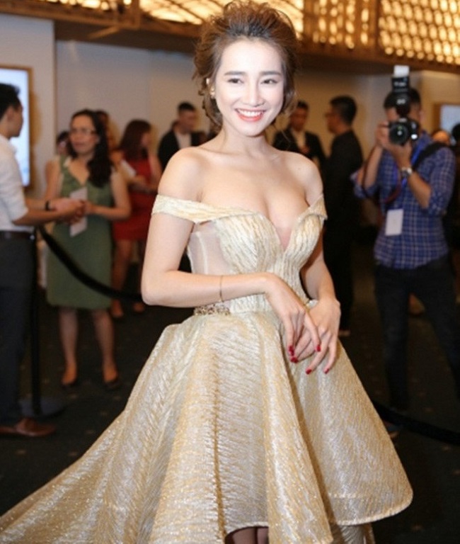 Phần vai trễ vừa vặn cũng khéo che đi bắp tay của Nhã Phương.