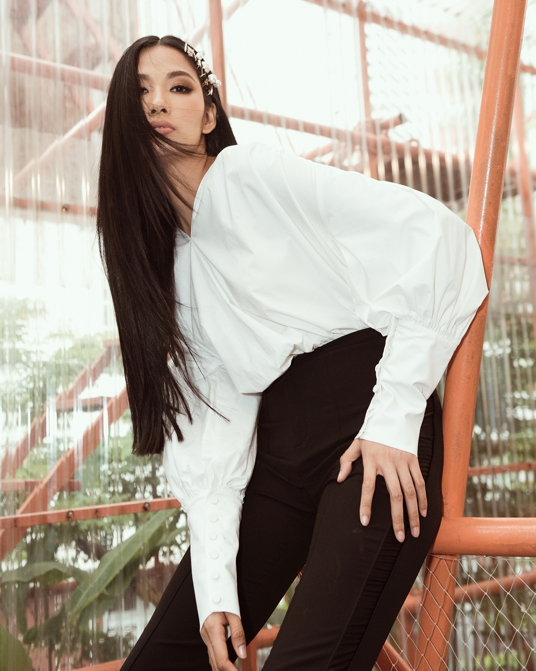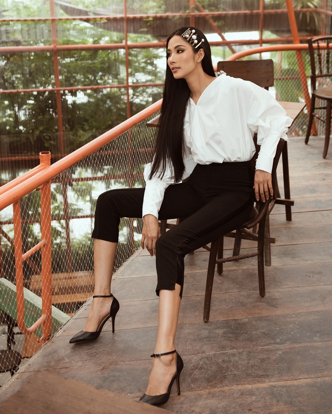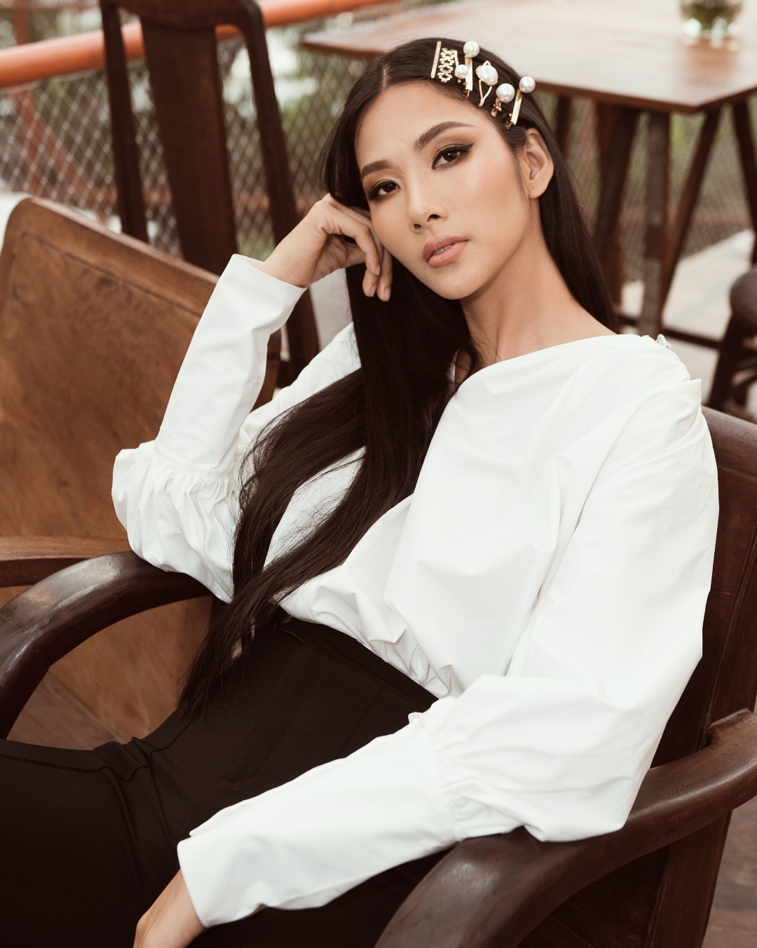 Mới đây, cô nàng tiếp tục khiến tín đồ thời trang “phát cuồng” khi thả dáng cùng outfit đơn sắc đen, trắng cực chất, nhưng điều khiến khán giả thích thú hơn cả lại nằm ở mái tóc dài suôn mượt cùng loạt phụ kiện kẹp tóc mà chân dài sử dụng.