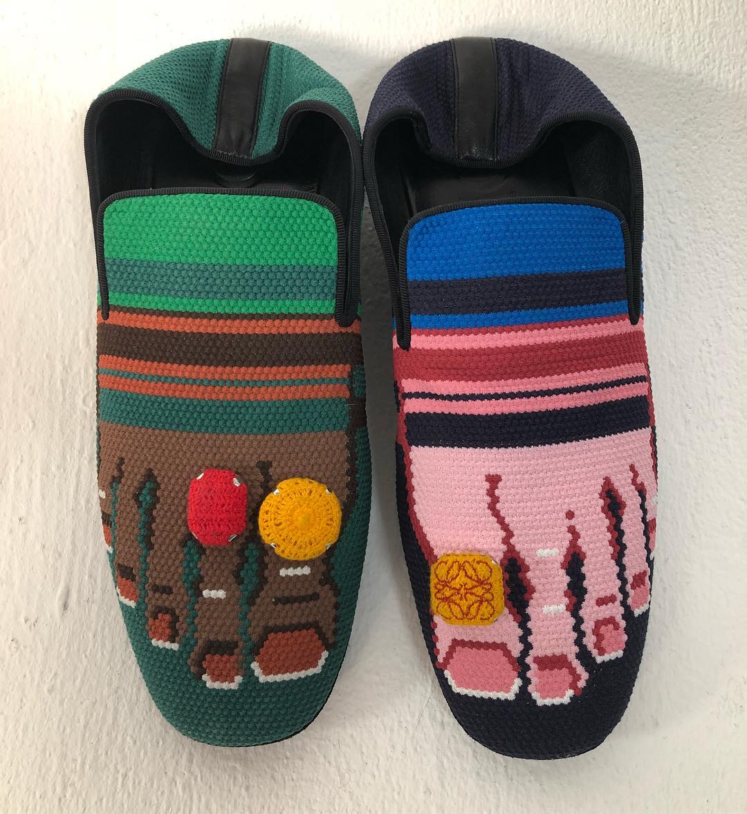Trong BST mới nhất, thương hiệu Loewe đã khiến giới mộ điệu sửng sốt khi trình làng những đôi giày với hình ảnh bàn chân được cách điệu trên phần mũi, làm thành một chi tiết lạ mắt. Nếu vẫn còn mang suy nghĩ giày phải che giấu ngón chân thì bạn nên cập nhật ngay kiểu mốt này để không phải lỡ nhịp xu hướng.