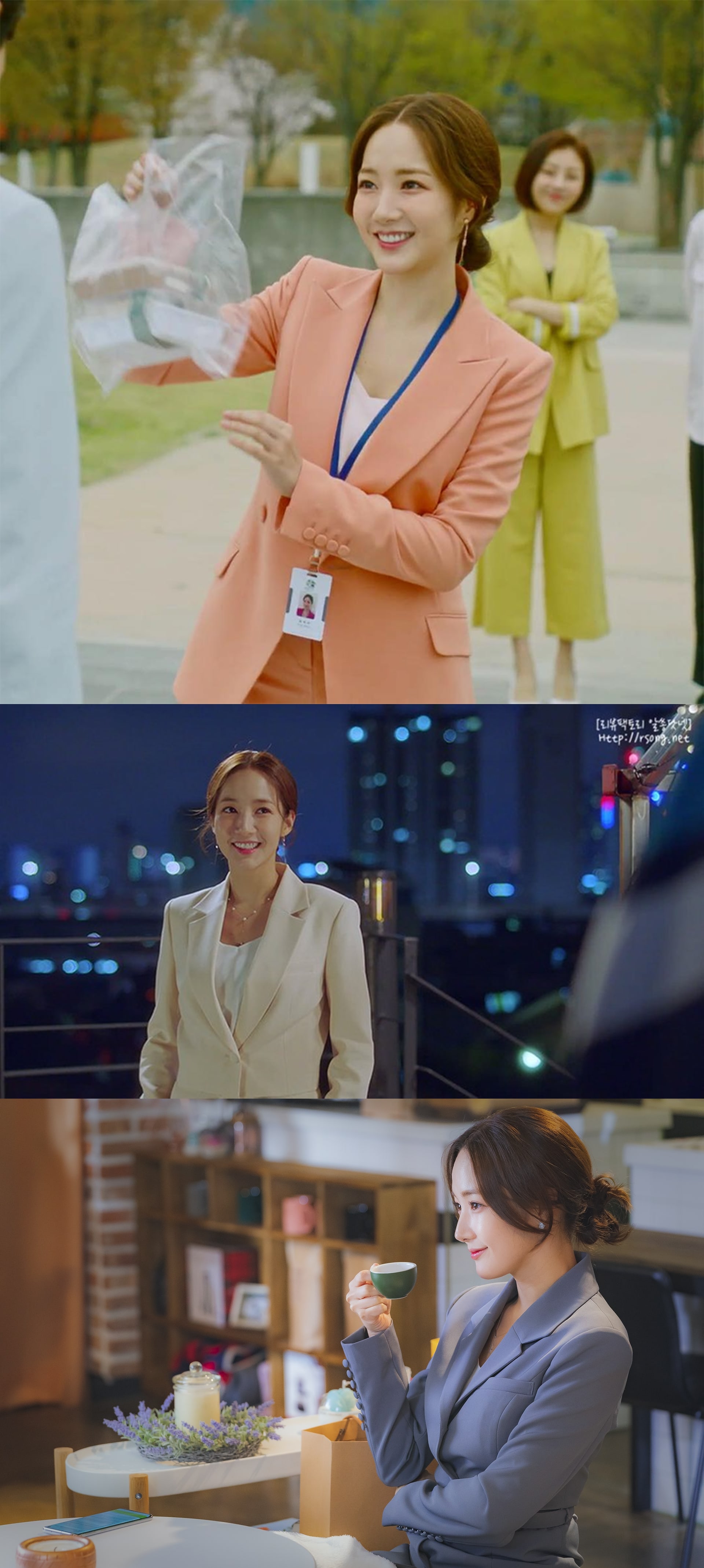 Trang phục đi làm của cô Park luôn toát lên vẻ nữ tính và tinh tế nhờ tông màu trung tính. Màu hồng nhạt và nâu nhạt là hai màu được ưu ái hơn cả. Cô luôn giữ cho mình vẻ ngoài dịu dàng, lịch sự, đơn giản phù hợp với môi trường công sở và cả những buổi tiệc bất ngờ sau giờ làm.
