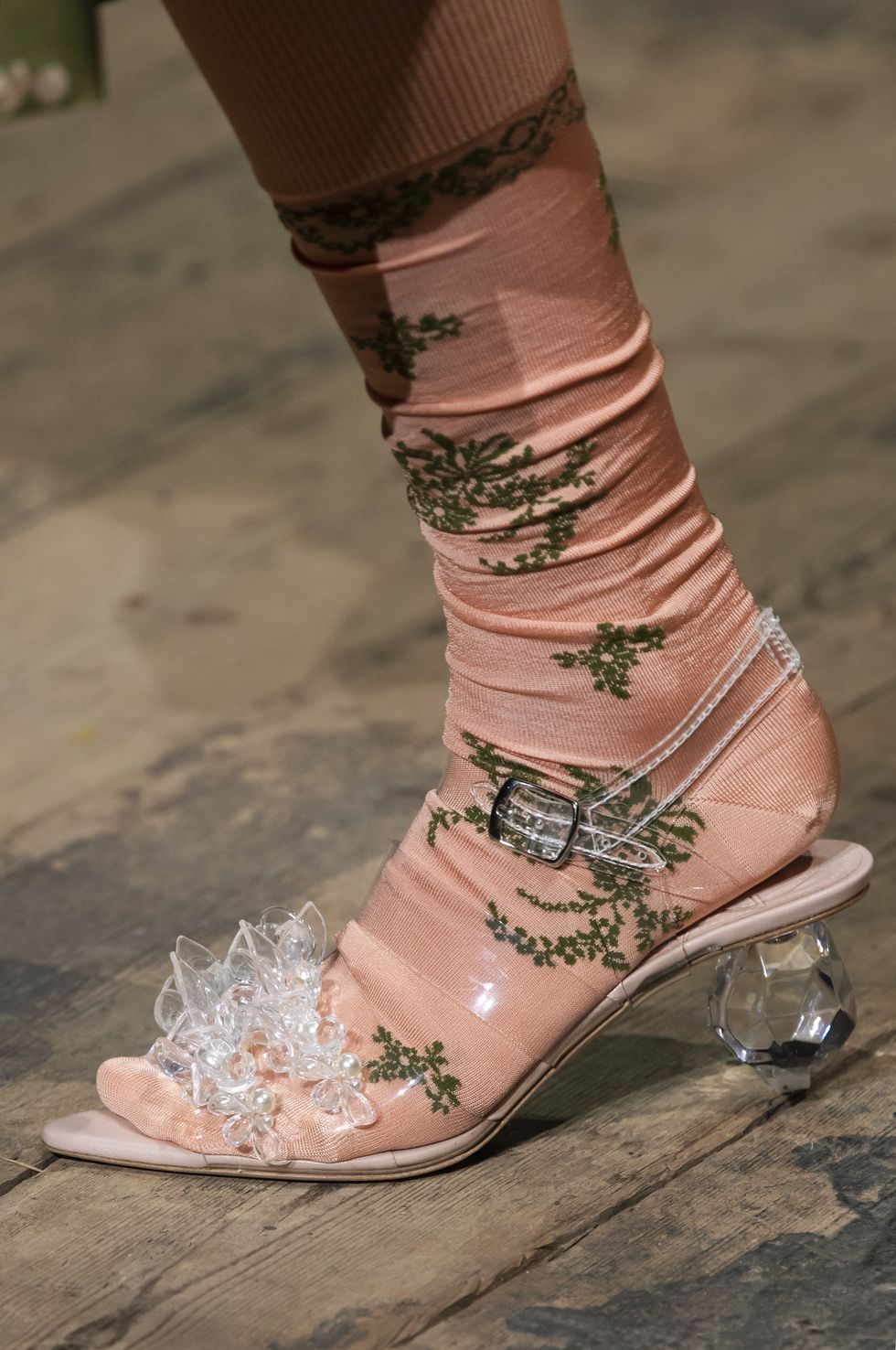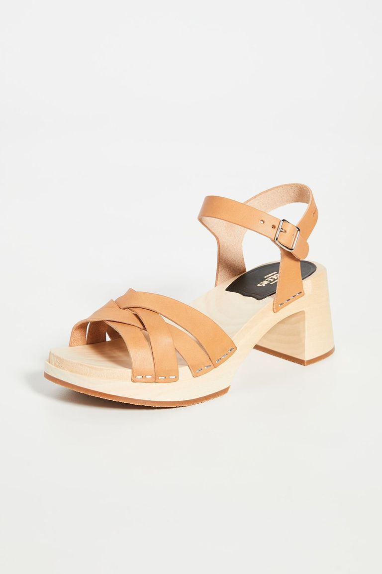Miu Miu, Skansen, Swedish Hasbeens…lại chọn các đôi guốc xăng đan làm mặt hàng chủ lực cho mùa hè 2020. Phần gót có vẻ nặng nề nhưng các quai đeo đính hoa sẽ khiến đôi chân bạn trở nên duyên dáng.