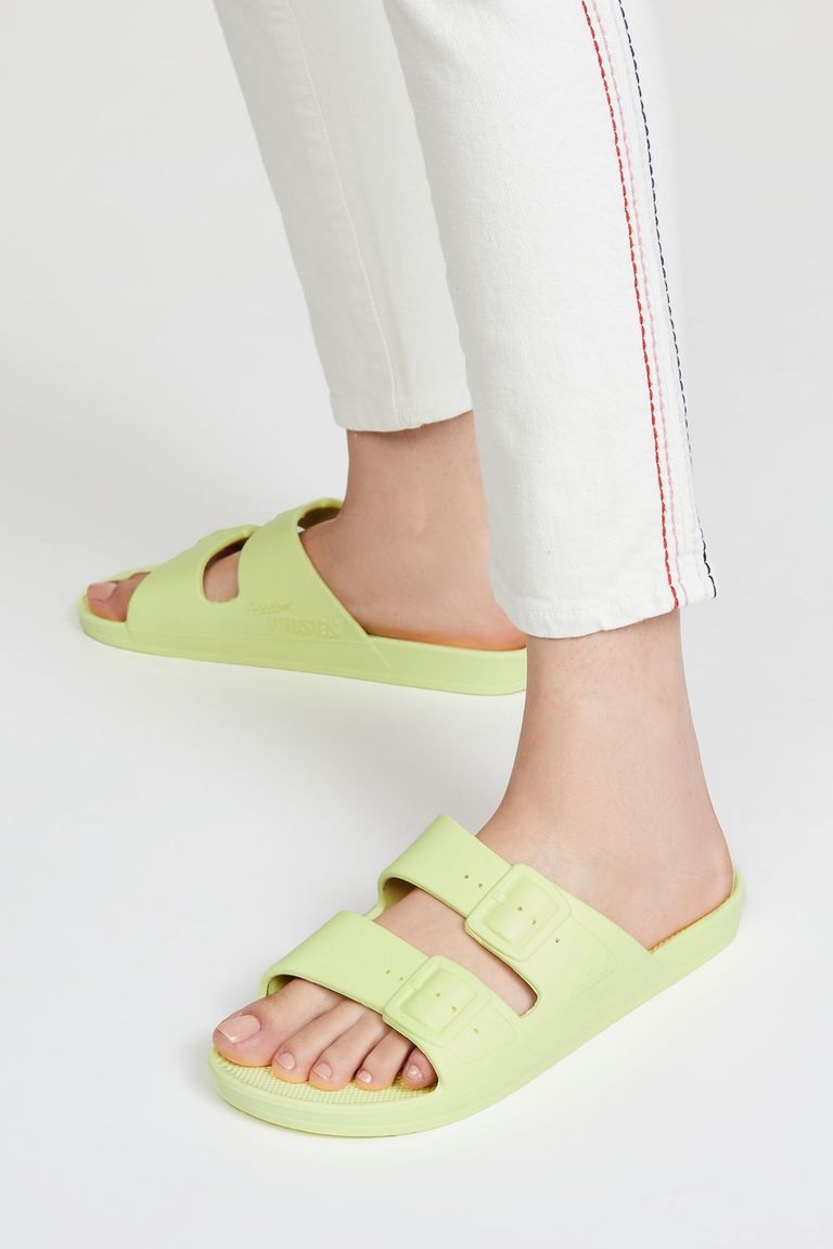 Zimmermann, Birkenstock, Freedom Move, Vince cung cấp cho chúng ta hàng loạt kiểu dép vừa tiện lợi vừa thanh lịch. Tuy vậy những mẫu dép lê chanh sả này có giá không nhẹ nhàng chút nào. Sản phẩm của Freedom Move có giá khoảng 929,820 VNĐ/ một đôi, của Birkenstock khoảng 3,486,825 VNĐ/ một đôi.