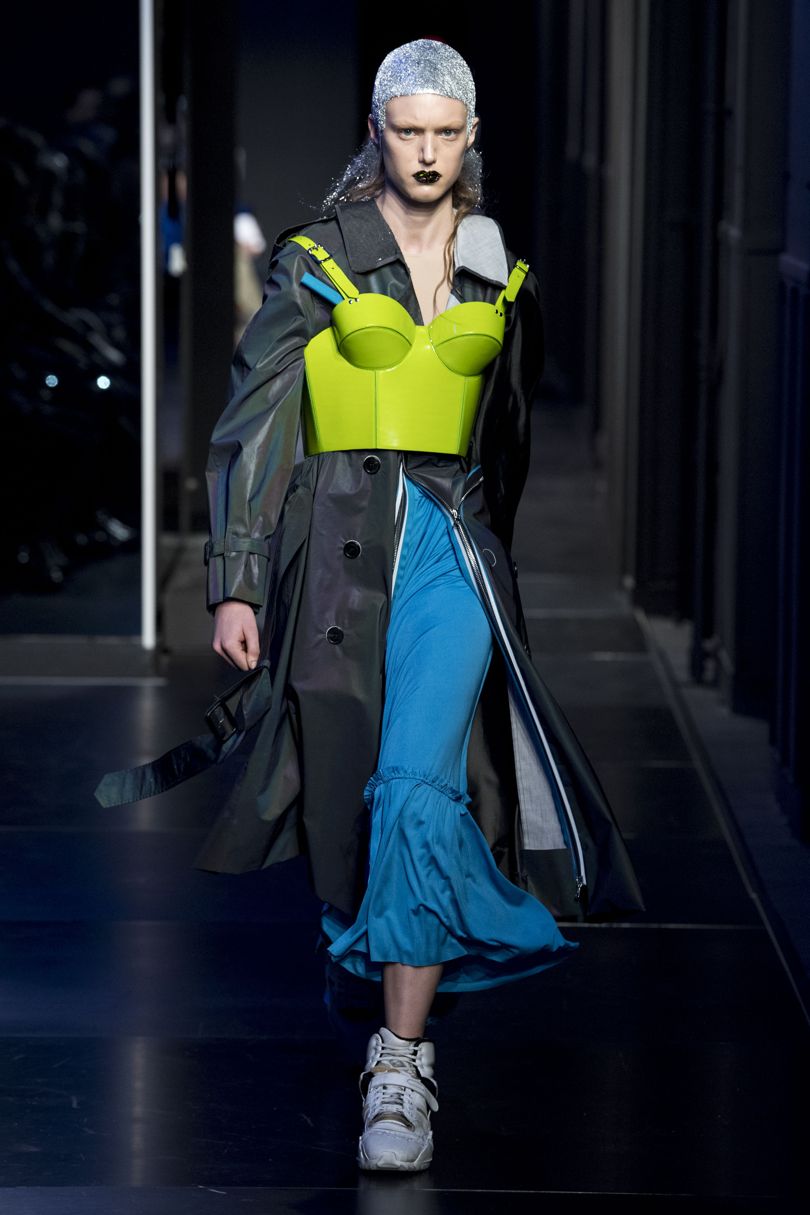 Ngoài ra, nhà mốt cũng đem đến những cách kết hợp lạ mắt như áo corset dạ quang mặc ngoài cùng măng-tô dáng dài. Không thể phủ nhận, đây đều là những thiết kế rất “độc, lạ”.