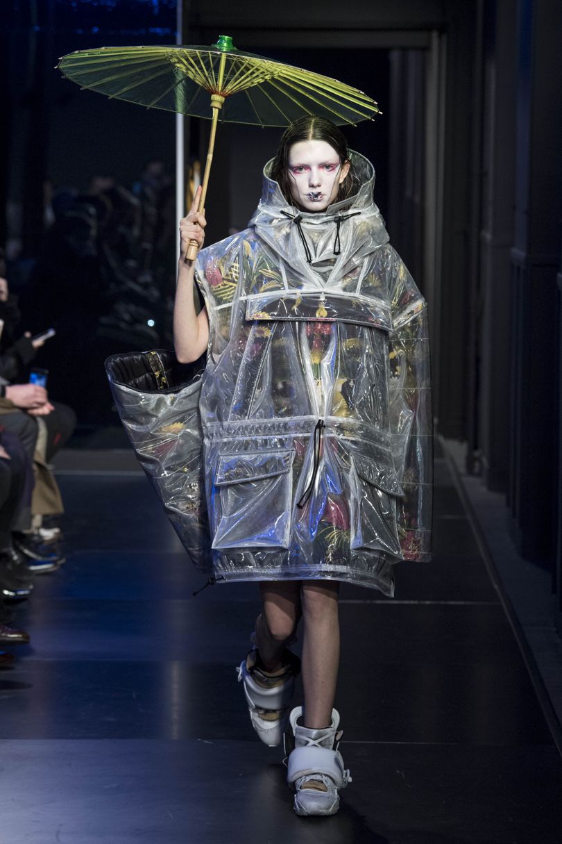 Không thể không nhắc đến thương hiệu Maison Margiela, nhà mốt đến từ Bỉ đem đến những thiết kế với tư duy mới mẻ. Trong BST năm nay, Maison Margiela gửi đến giới mộ điệu những thiết kế lạ mắt, với chất liệu plastic ấn tượng với kiểu tay “1 mất 1 còn”.