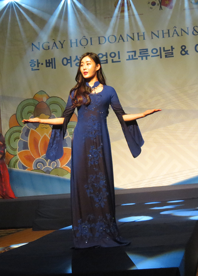 Vừa qua, NTK áo dài nổi tiếng Đỗ Trịnh Hoài Nam tiếp tục mang bộ sưu tập mới nhất của mình đi chinh phục tín đồ thời trang Hàn Quốc. Bộ sưu tập “Hồn Việt” là nét chấm phá, nốt thăng trong bản nhạc quảng bá áo dài đến với thế giới.