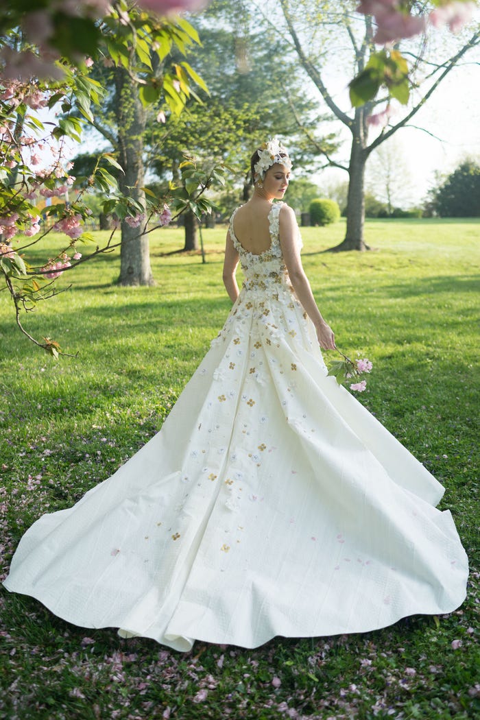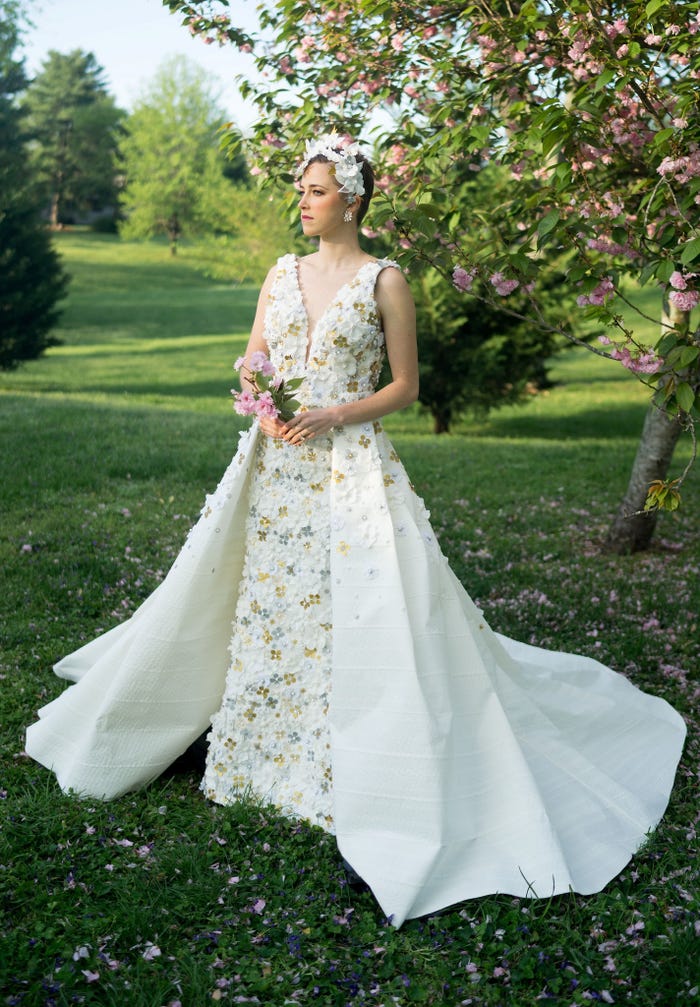 10. Frank Cazares mang đến một chiếc váy ngàn hoa khiến mọi cô dâu đều phải xiêu lòng.