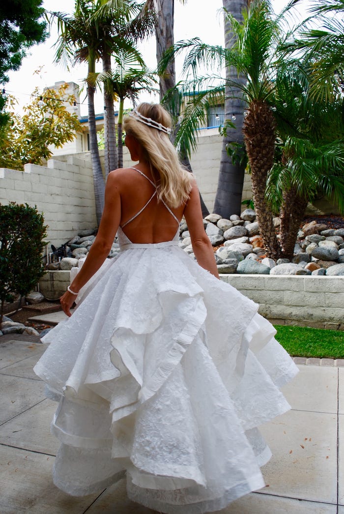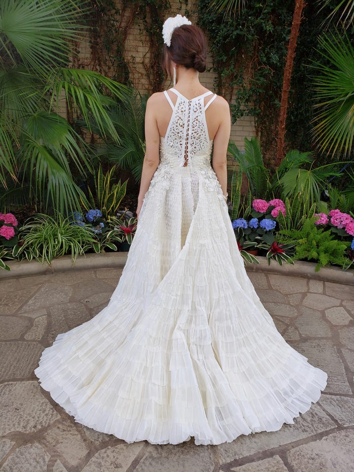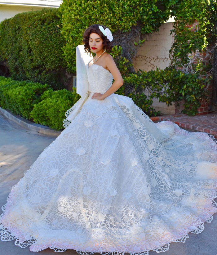 9. Chiếc váy của Leonor Calderon là một sản phẩm nghệ thuật thực thụ. Màu váy ombre của cô được đánh giá là sự khác biệt lớn so với các mẫu váy trắng đơn thuần khác.
