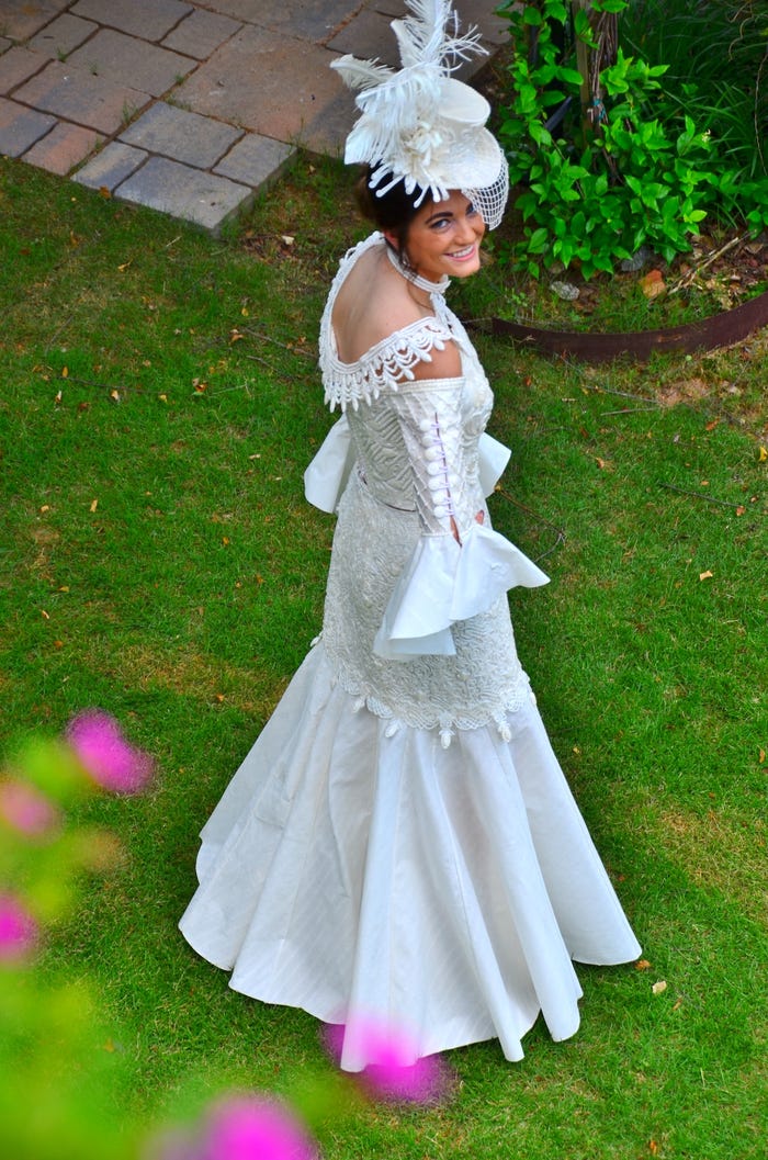 3. Susan Nicholson đứng ở vị trí thứ ba với bộ váy đuôi cá cực công phu. Chiếc mũ do cô thiết kế được giám khảo đánh giá cao bởi mang yếu tố văn hóa rất đậm nét. Giải thưởng của cô trị giá $2,500 (58,021,250 VNĐ).