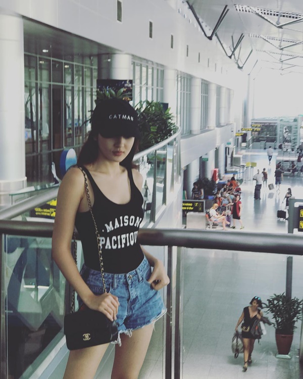 Bảo Anh có vẻ rất yêu mẫu áo tắm có in dòng chữ trắng đơn giản, basic này.