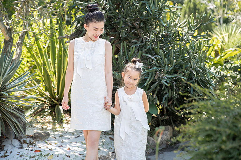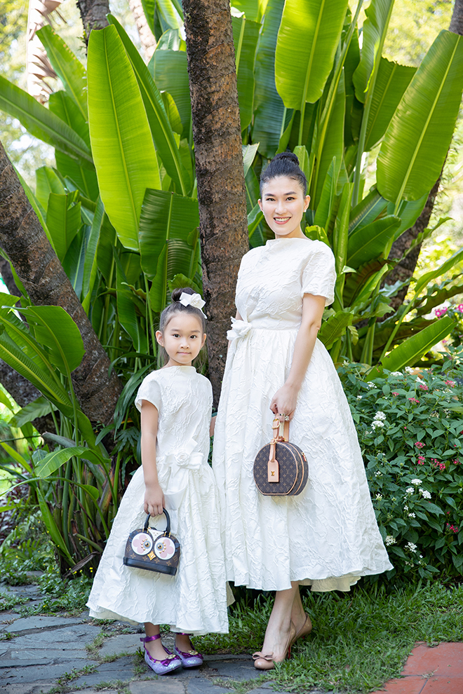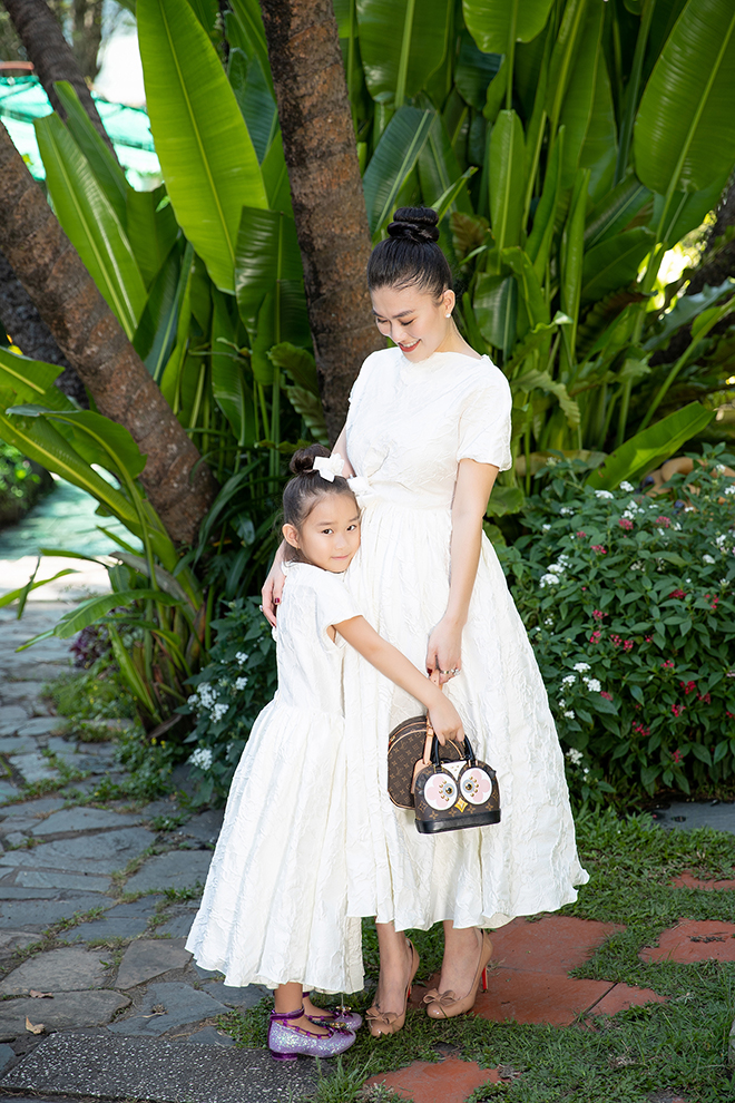 Bộ ảnh mới của nữ doanh nhân và con gái được thực hiện tại TP.HCM. Trong bộ ảnh, nữ doanh nhân hằng Châu và con gái khoác lên mình những thiết kế tông trắng được làm từ ý tưởng “Đoá trà my” nhẹ nhàng và thanh khiết.