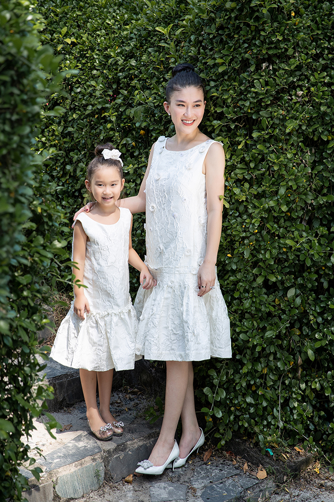 Màu trắng là gam màu dễ mặc và dễ phối khi mẹ và con gái muốn mặc đồ đôi