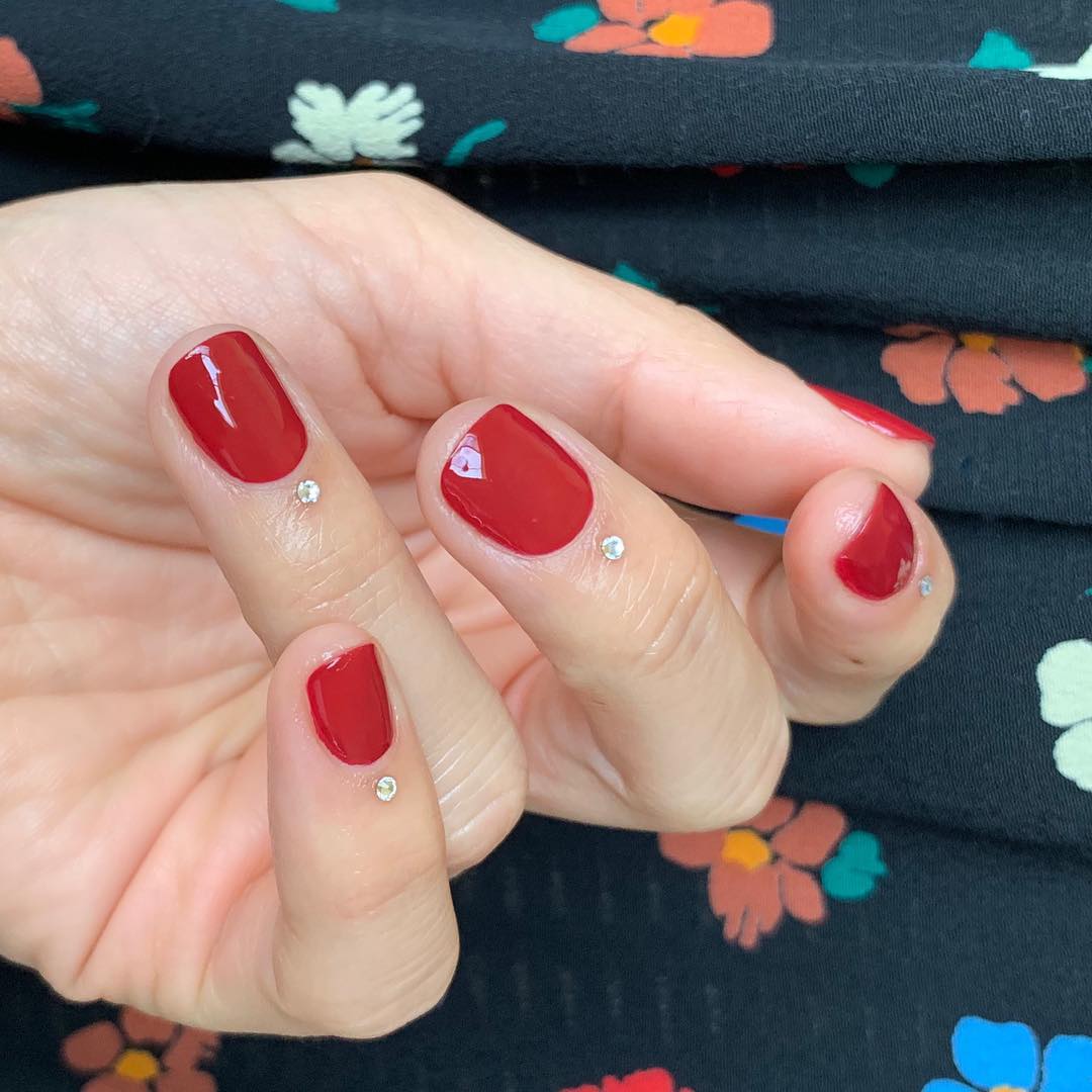 Cảm thấy rối mắt vì các họa tiết vẽ nail? Vậy thì bộ nail của stephstonenails sinh ra là dành cho bạn. Bạn chỉ cần đánh một bộ nail đỏ mọng cổ điển rồi đính một viên đá vào phần da sát móng tay là hoàn thành. Kiểu nail này không thể duy trì trong nhiều ngày nhưng hoàn toàn thừa sức cho một tối Valentine.