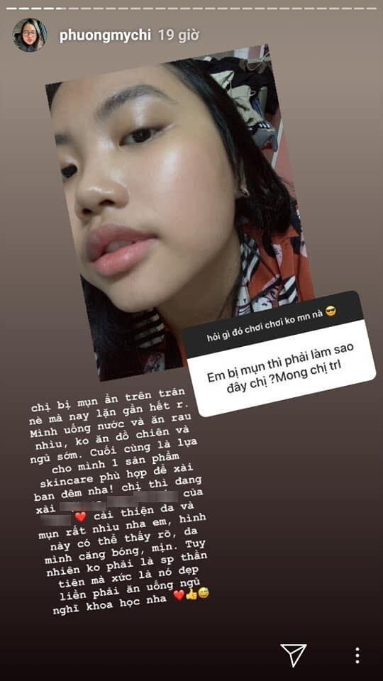 Nhiều người còn nói rằng, Phương Mỹ Chi hay đi diễn nhưng bỏ qua công đoạn tẩy trang thì hậu quả sẽ khôn lường. Chính điều này làm mụn tích tụ trên da và làn da ngày một xấu đi.