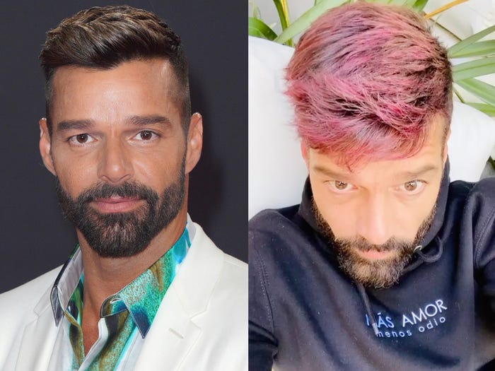 Tóc sáng màu thường chỉ xuất hiện trong thế giới Kpop, giờ thì ngôi sao gạo cội như Ricky Martin cũng chuyển sang tóc hồng.