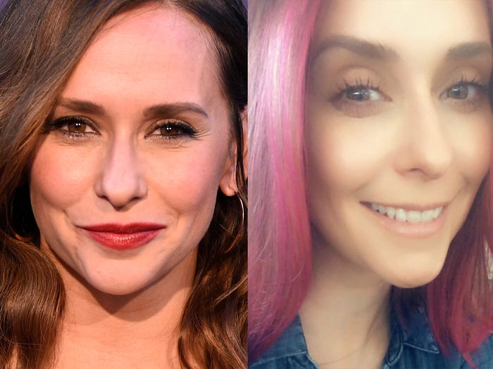 Jennifer Love Hewitt không dám nhuộm tới bến nên chỉ thêm một vài lọn light hồng ở mái.