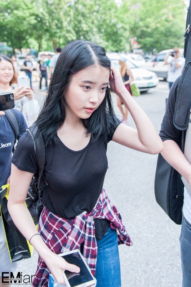 Mặt mộc của IU nghĩa là full make up, kẻ lông mày, đánh son, đánh khối đầy đủ. Nhưng vì tiết chế không kẻ eyeliner nên nhìn gương mặt cô nàng vẫn trẻ trung, tự nhiên.