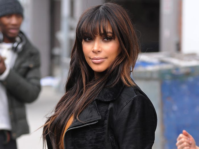 1. Năm 2013, Kim Kardashian theo đổi phong cách ngôi sao nhạc Rock nên để tóc dày sụ che trán. Giờ cô đã update lên phiên bản chanh sả nhờ kiểu tóc rẽ ngôi giữa bóng mượt.