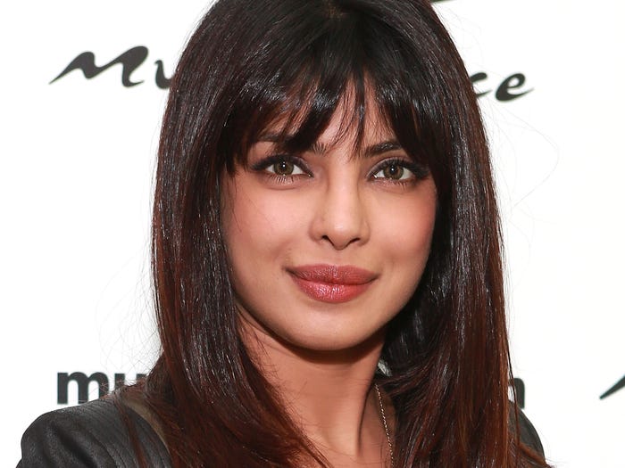 2. Cũng trong năm 2013, người đẹp Priyanka Chopra cắt tóc mái mưa chuẩn Hàn Quốc. Đến 2017, Priyanka đã chuyển sang tóc không mái trưởng thành để theo Nick Jonas về dinh.