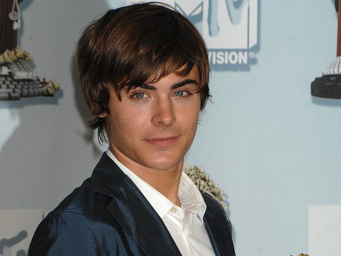 6. Quay lại những ngày huyền thoại của “High School Musical”, Zac Efron từng trung thành với kiểu tóc rong biển. Giờ Zac đã thành người đàn ông nam tính ngời ngời với kiểu tóc hất ngược bóng loáng.
