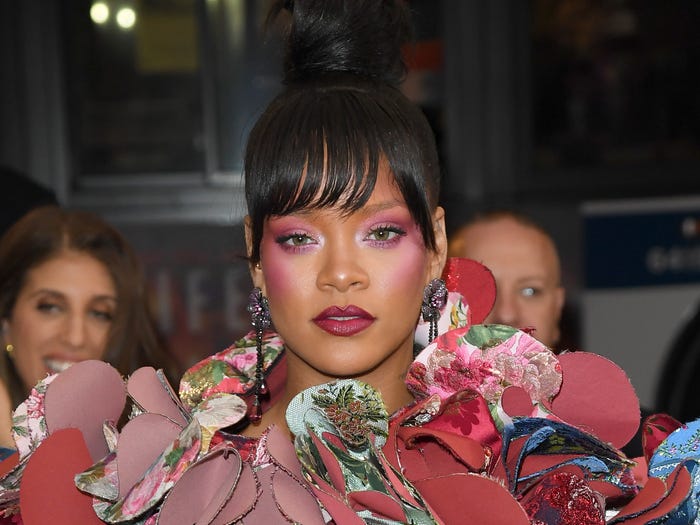 13. Rihanna khoe tóc mái cực độc trong Met Gala 2017. Nữ ca sỹ thích để kiểu tóc hở trán nhưng sẽ đồng ý cắt khi cần kết hợp với trang phục.