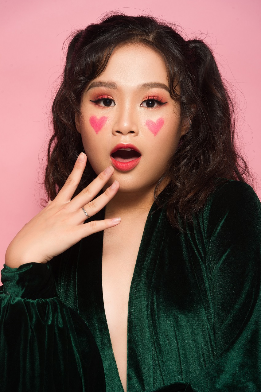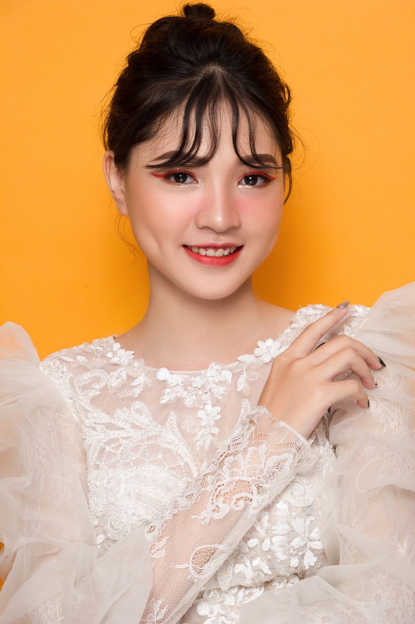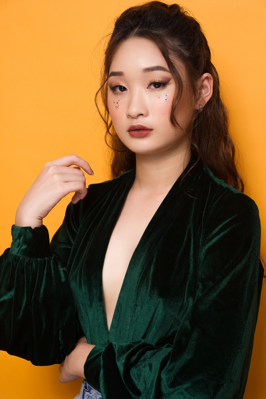 Nếu bạn đang có lối trang điểm sắc sảo nhấn vào phần mắt, hãy giữ nguyên phần cơ mặt và lấy chiều sâu mắt để có thể có 1 bức ảnh beauty cực hút.