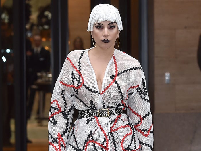 8. Hai năm trở lại đây, Lady Gaga đột ngột chuyển sang phong cách ‘bánh bèo’. Nhưng năm 2014, ‘mẹ quái vật’ gần như thay đổi kiểu tóc hàng ngày. Tất nhiên mái tóc ngắn trắng xóa ở Milan chỉ là một phần nhỏ trong bộ sưu tập tóc kỳ lại của Gaga.